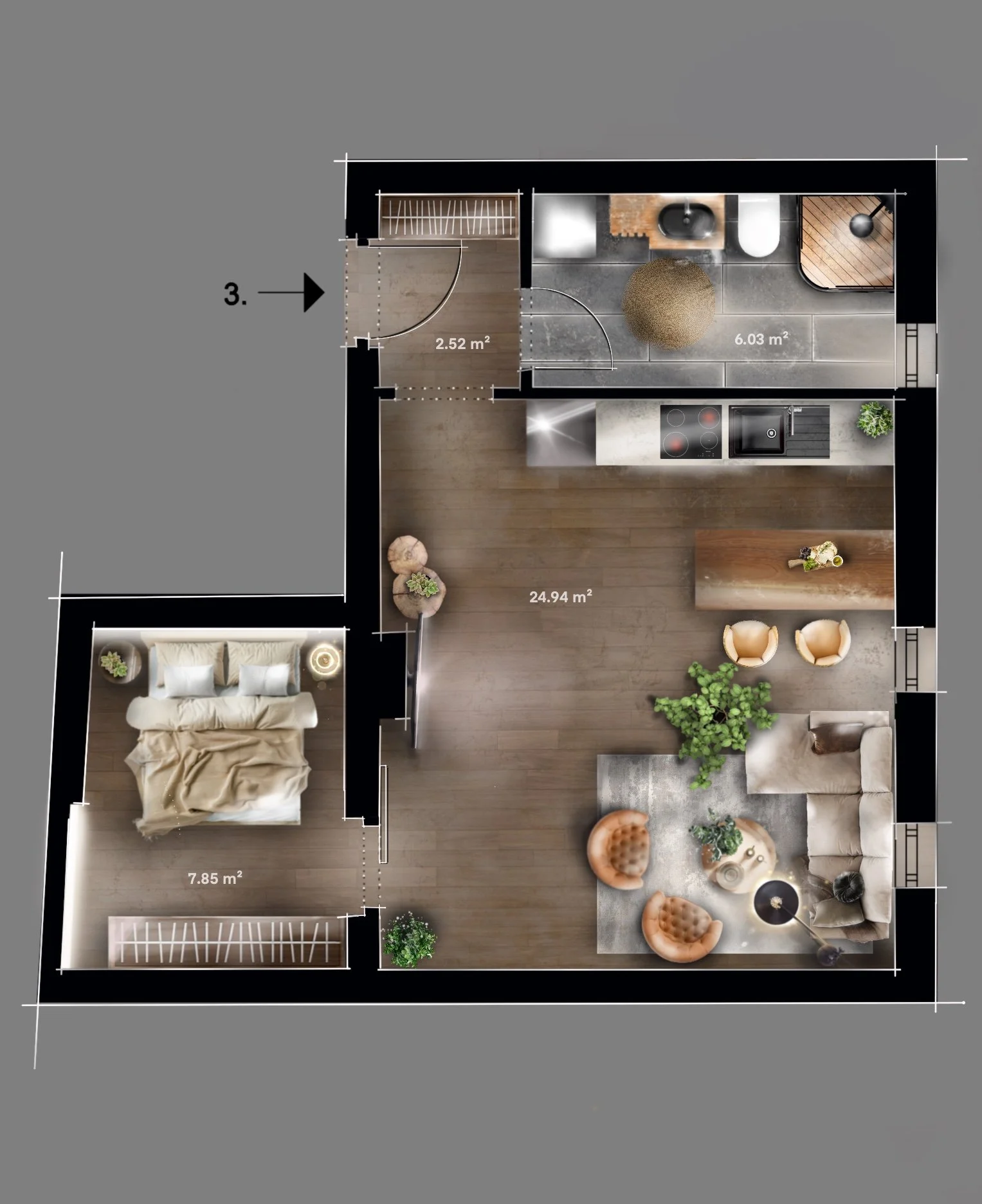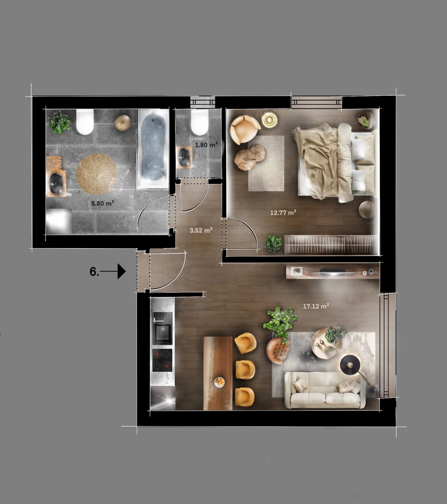 Első és második emeleti lakásaink 33-53 négyzetméteres alapterületig, több lakásunk esetében terasszal képezik kínálatunk részét.