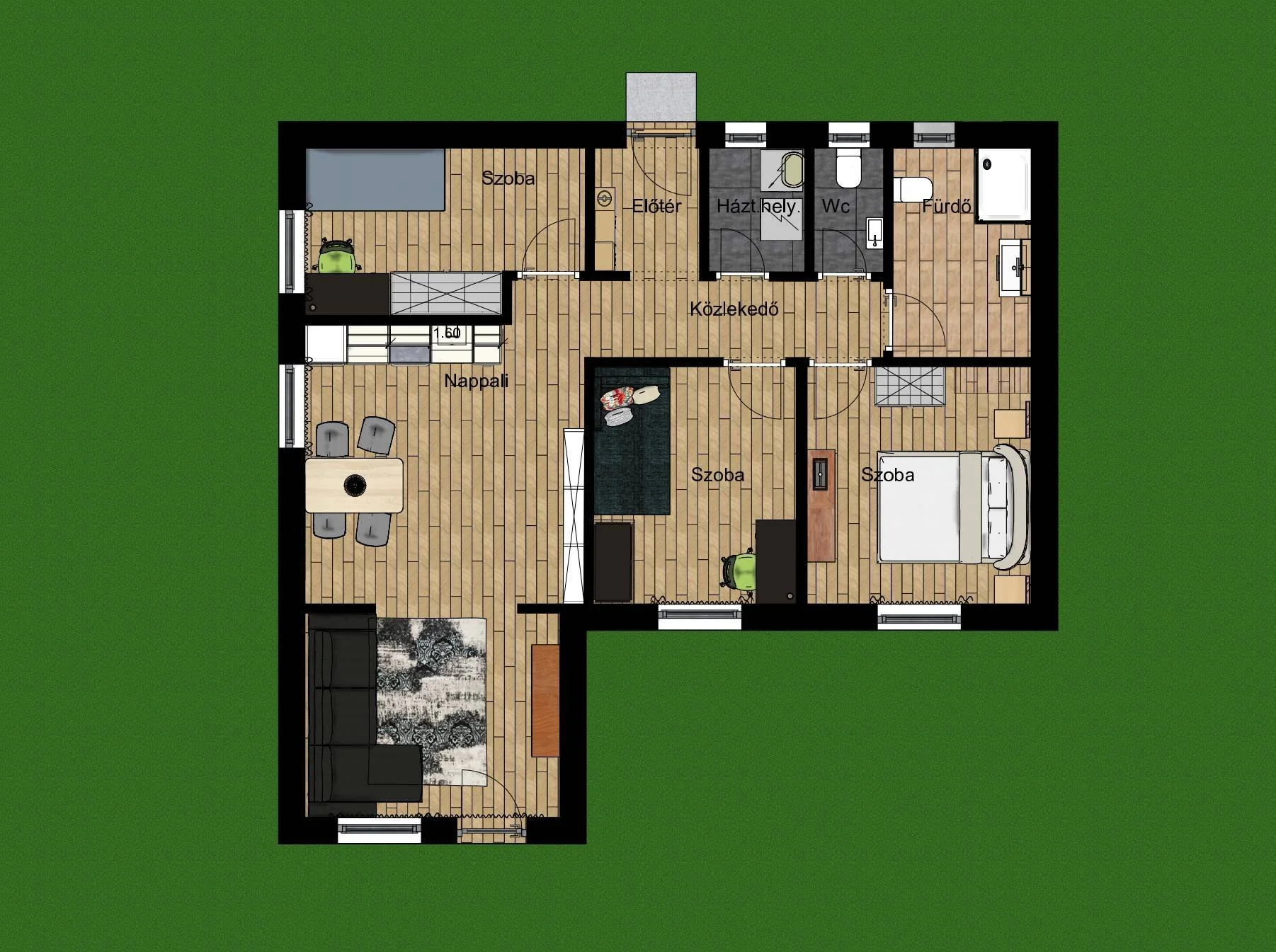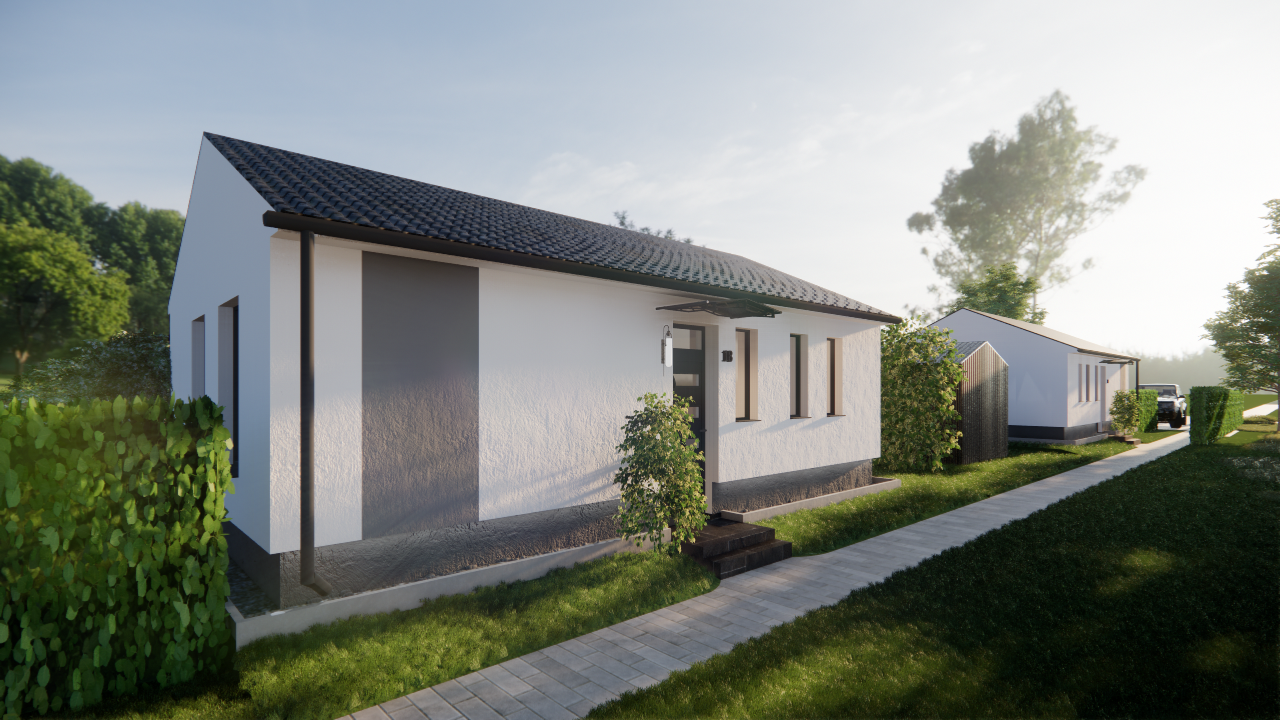 Amennyiben teljes értékű családi házra vágyik, azonban kisebb alapterület is kielégítené igényeit, figyelmébe ajánljuk kiválóan optimalizált "Borostyán 3” típusházunkat.